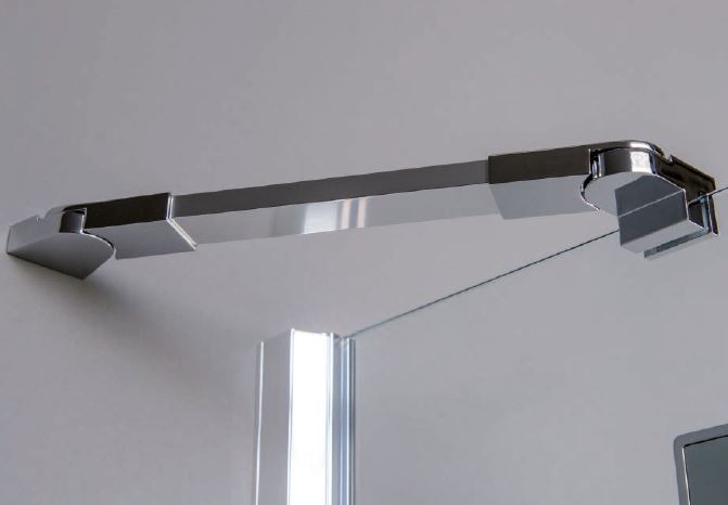 Parete doccia con apertura a porta battente con doppia parete fissa in linea. L'apertura dell'anta è sia verso l'interno che verso l'esterno. Modello ad alto impatto estetico e disponibile in dimensioni maggiori rispetto ad una tradizionale porta.